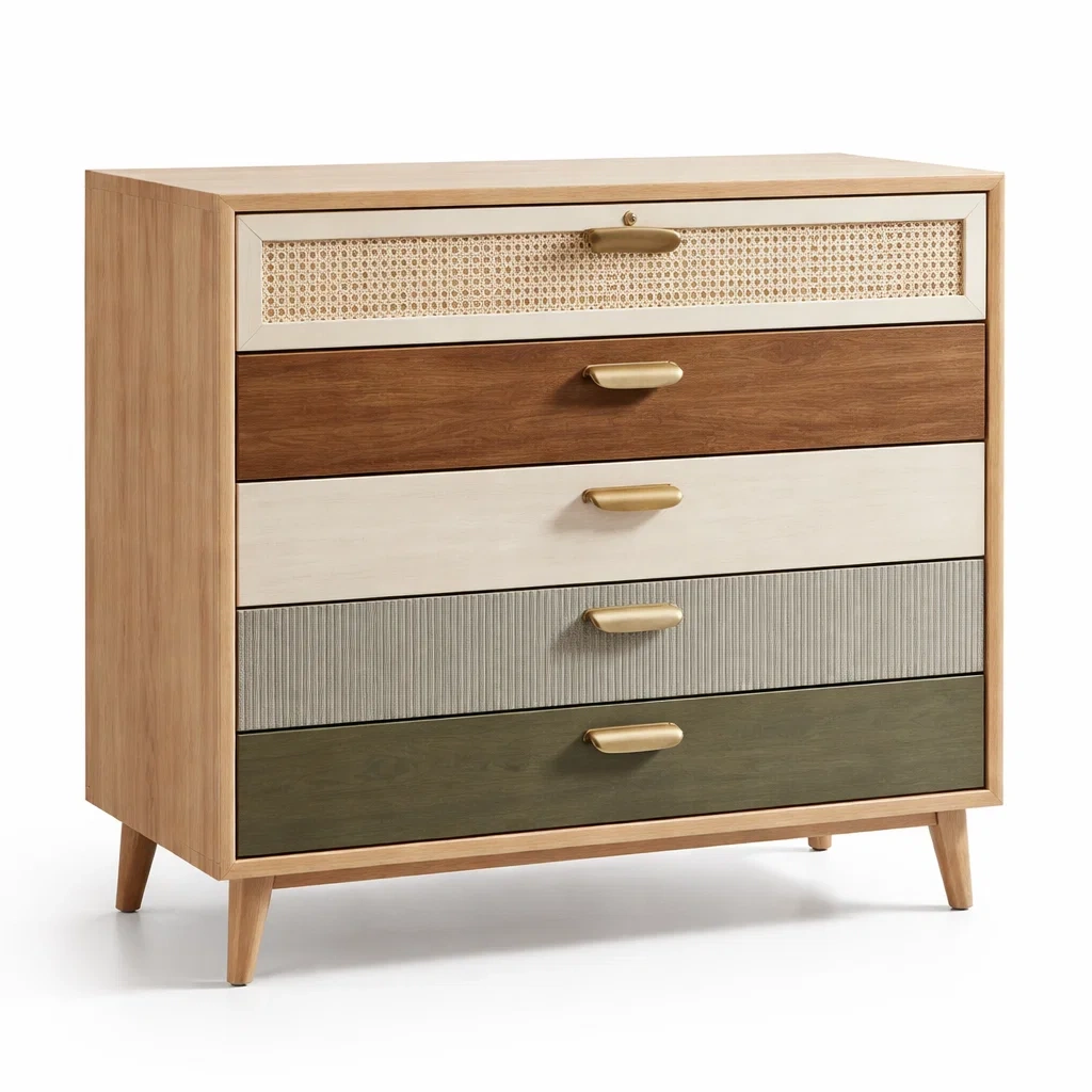 Cassettiera in legno multicolore con cinque cassetti