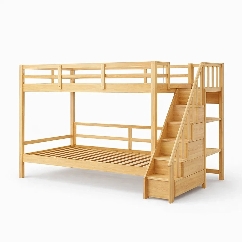Letto a castello in legno massello con scala laterale
