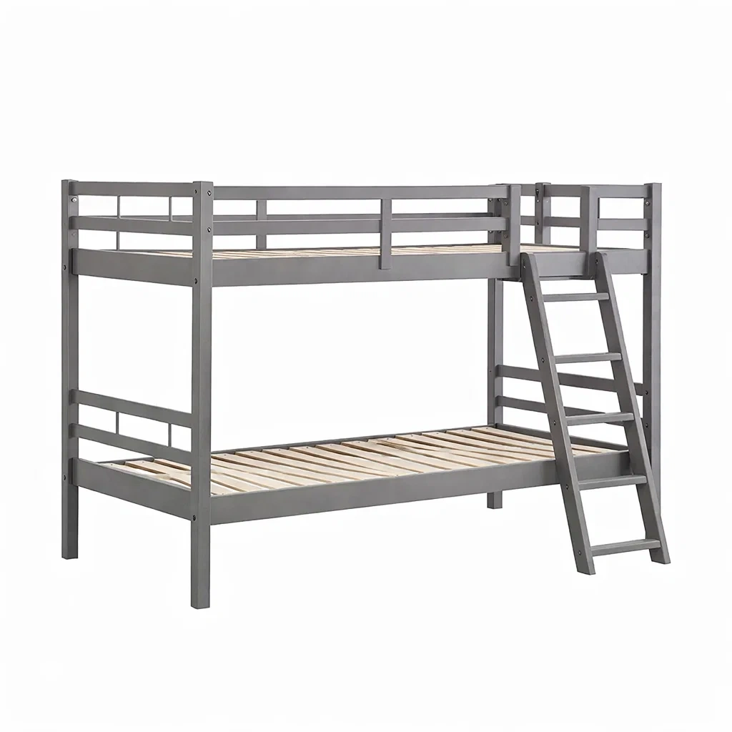 Letto a castello in legno grigio con scala