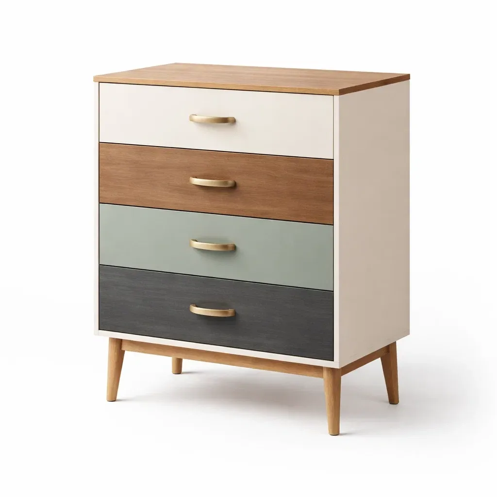 Cassettiera in legno multicolore con quattro cassetti
