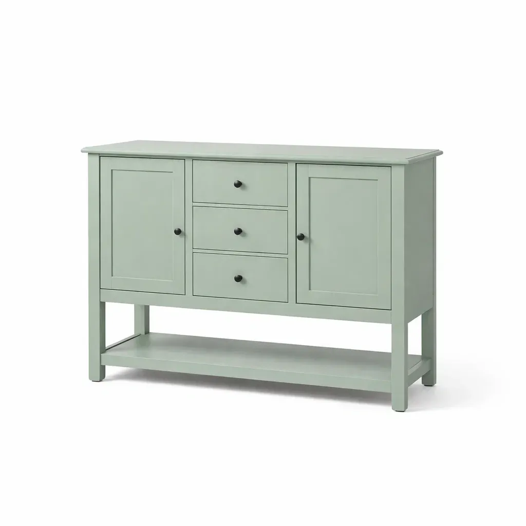 Credenza in legno con tre cassetti e due ante verde